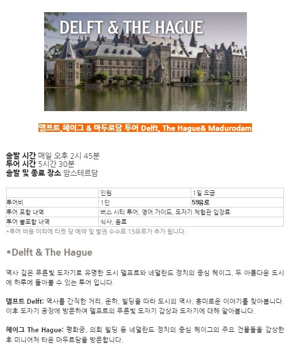 ** 투어 예약은 daihantravel@gmail.com / www.netherland.kr /
